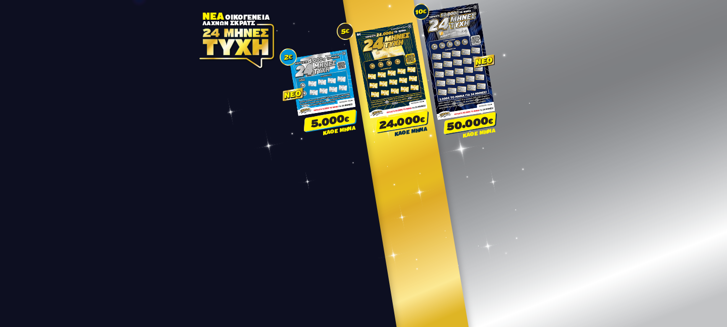SCRATCH 24 MONTHS OF LUCK, the family of scratch tickets that shares €5,000, €24,000, and €50,000 every month for 24 months!